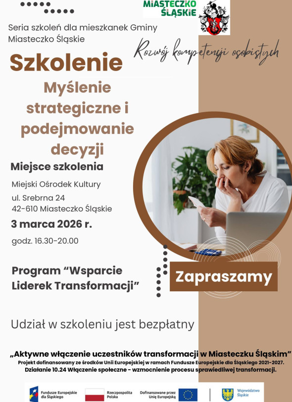 Bezpłatne szkolenie dla mieszkanek gminy Miasteczko Śląskie „Myślenie strategiczne i podejmowanie decyzji”.