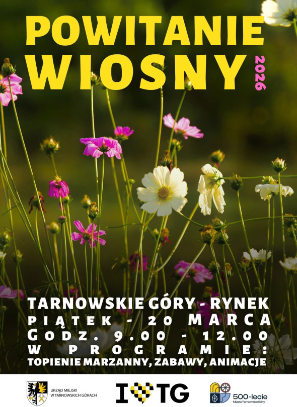 Zaproszenie na powitanie wiosny na tarnogórskim rynku. W programie: topienie marzanny, animacje, zabawy.