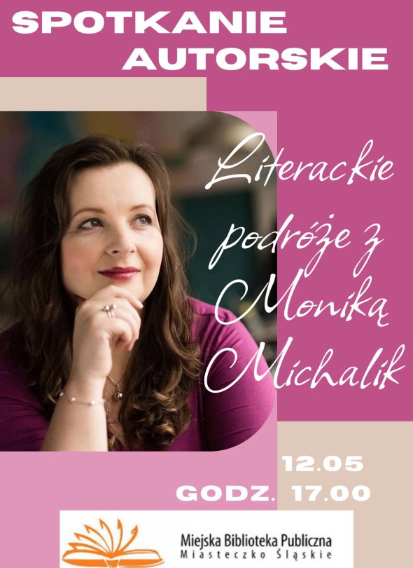 Miejska Biblioteka Publiczna w Miasteczku Śląskim zaprasza na spotkanie autorskie z Moniką Michalik, które odbędzie się 12 maja o godz. 17.