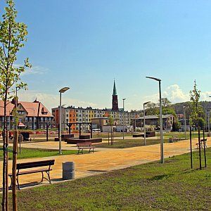 Prace, prowadzone w trybie „zaprojektuj i wybuduj”, obejmowały: stworzenie placu miejskiego wraz ze strefami zieleni, chodnikami i trasami dla rowerów, montaż małej architektury, oświetlenia i monitoringu. Powstała też scena wraz z zadaszeniem i kanałem technicznym przy drodze dojazdowej do Centrum Kultury „Karolinka”.