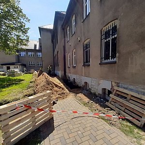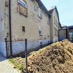 Wykonawca rozpoczął prace od izolacji ścian piwnic, trzeba było odkopać ściany fundamentowe i piwniczne, miejscami wykopy mają głębokość ponad 4 m. Kolejne prace to ocieplenie ścian oraz stropu. Zaplanowano jeszcze wymianę starego pieca węglowego na nowy gazowy.