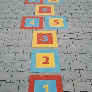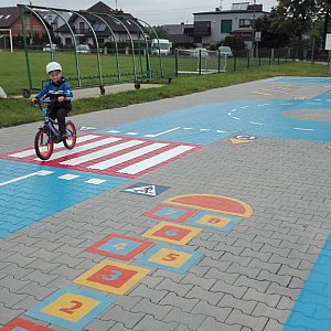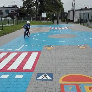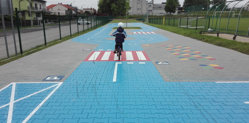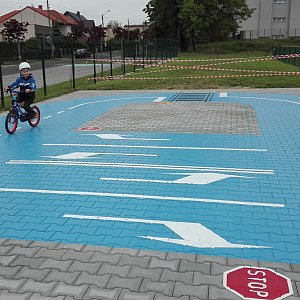 Trzeba było przygotować teren przy boisku, wybrukować go i na samym końcu pomalować. Nowatorskim rozwiązaniem jest właśnie malowanie natryskowe – całe oznakowanie jest poziome, nie ma żadnych pachołków, słupków. Dzięki temu plac można wykorzystać np. na organizację festynów. Przygotowano też coś dla tych, którzy nie przyjadą na rowerze, hulajnodze czy rolkach – zabawy podwórkowe, takie jak gra w klasy czy twister.
