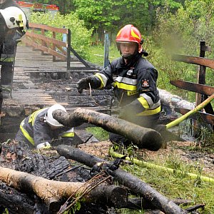 Dzisiaj około południa spłonęła znaczna część drewnianego mostu pomiędzy Truszczycą a Kuczowem w gminie Kalety. Strażacy ugasili pożar, a potem rozebrali tlące się fragmenty konstrukcji.