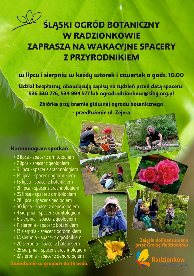 Śląski Ogród Botaniczny w Radzionkowie zaprasza na wakacyjne spacery z przewodnikiem. Odbywają się w każdy wtorek i czwartek lipca i sierpnia. Start o godz. 10, zbiórka przy bramie głównej.