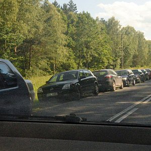 Przy wjeździe nad zalew Nakło-Chechło dzisiaj już po godz. 13 pojawiły się banery informujące o braku miejsc parkingowych. Zdesperowani kierowcy pozostawiali samochody na poboczu wzdłuż drogi wojewódzkiej, czy na bocznych leśnych dróżkach.