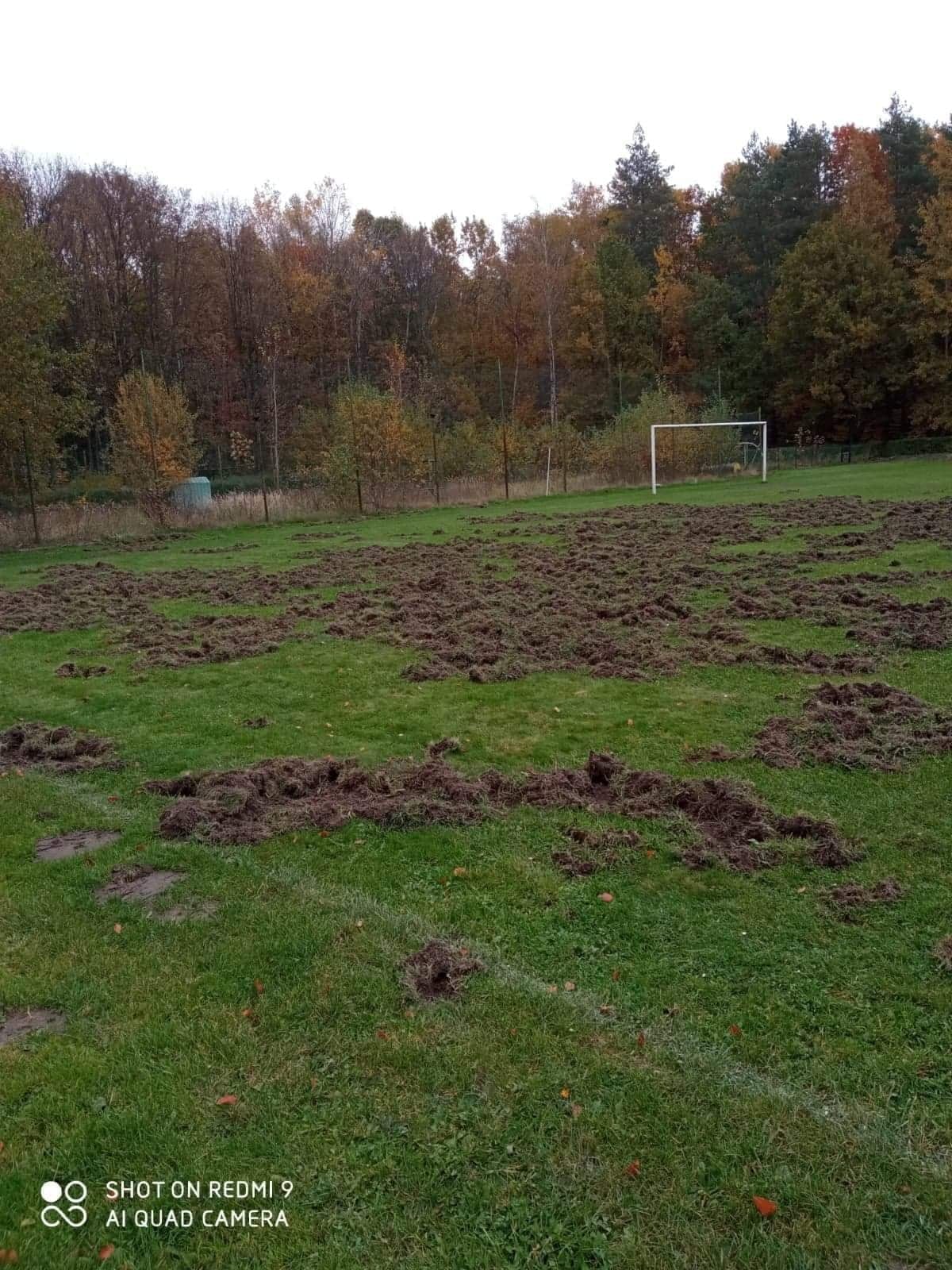 Dziki zryły też boisko Tarnowiczanki Stare Tarnowice.