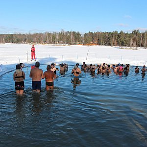 Mroźna, ale słoneczna pogoda i szczególna okazja, czyli finał WOŚP sprawiły, że dziś przed południem parkingi przy zalewie były prawie pełne. Na morsowanie zdecydowało się wiele osób, w tym sporo rodziców z dziećmi. Wielu śmiałków wzięło udział w nieformalnym Biegu w samych gaciach wokół zalewu. Niektórzy wyzwanie potraktowali naprawdę dosłownie.
