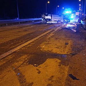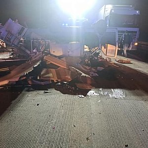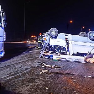 Jak ustaliła policja kierujący manem uderzył w prawą stroną kabiny w tył kampera. Auto wjechało w bariery energochłonne i dachowało. Zginęła 39-letnia kobieta, a jej mąż i dzieci w wieku 4 i 12 lat zostali przewiezieni do szpitala.
