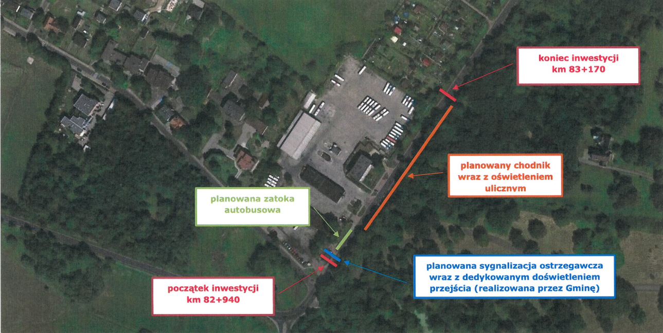 Oddział Katowicki Generalnej Dyrekcji Dróg Krajowych i Autostrad poinformował, że podpisał umowę z firmą Gramar z Lublińca. Zaprojektuje i wybuduje 200-metrowy chodnik, zatokę autobusową z peronem i oświetlenie.