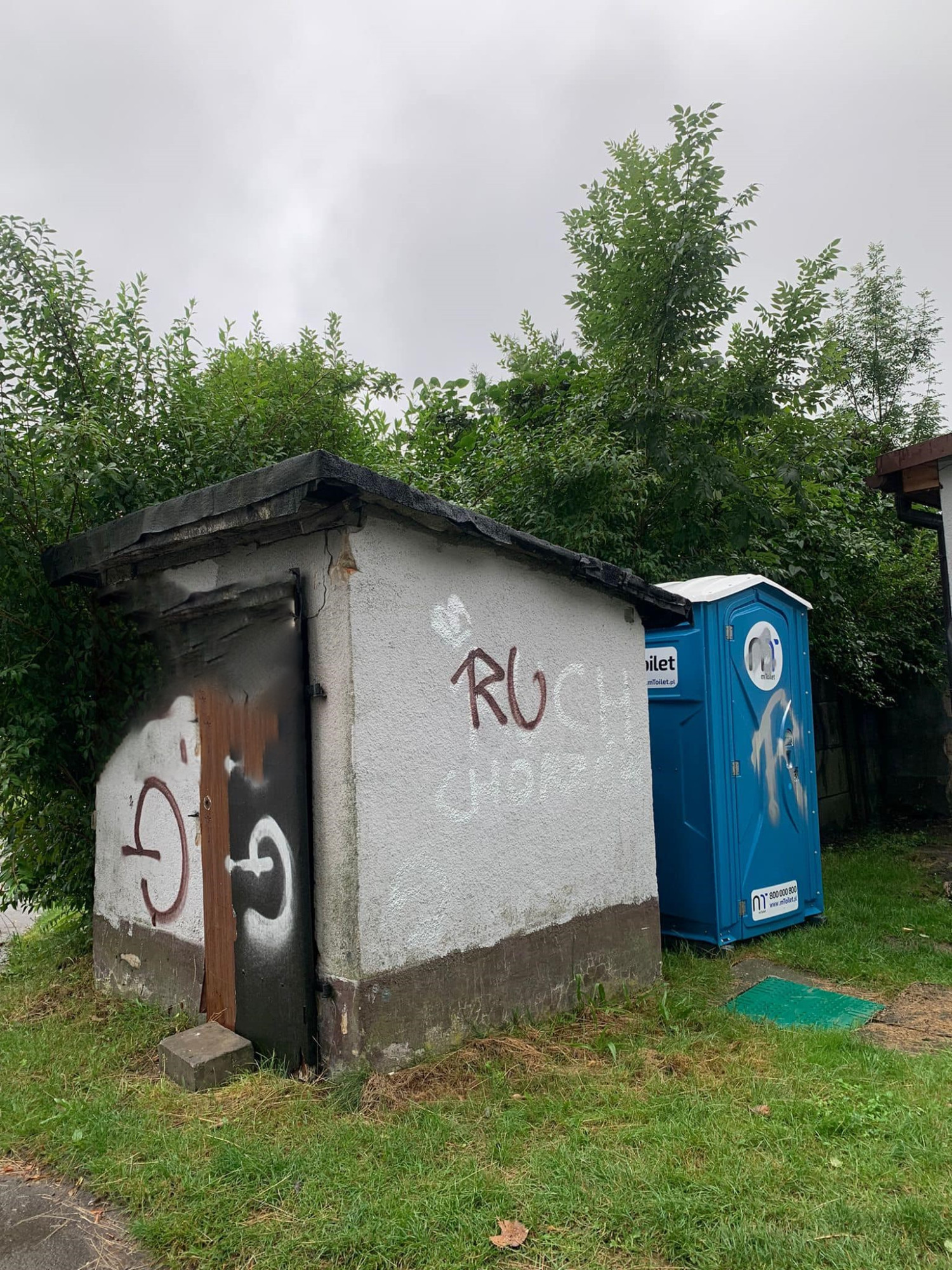 Budynek klubowy LKS Naprzód Wieszowa padł ofiarą wandali. Wiadomo, że są sympatykami Ruchu Chorzów i gustują w wulgarnych napisach.