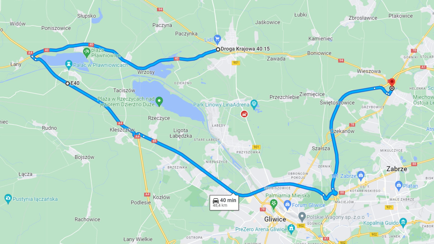 Objazd do Bytomia oraz do Opola został wyznaczony następującymi drogami: DK 78 – A1 – A4 – DK 40.