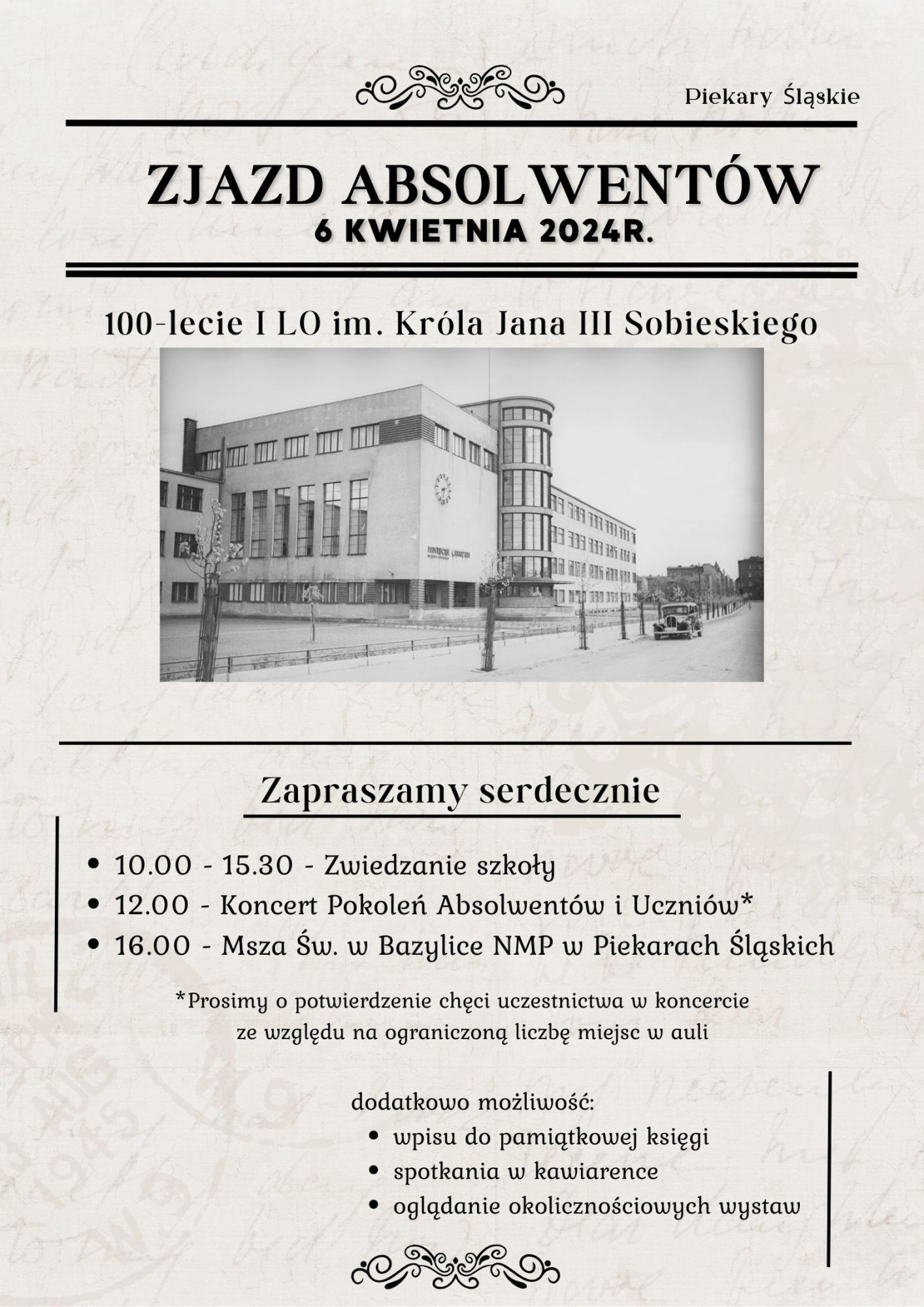 Za niespełna 2 miesiące I Liceum Ogólnokształcące im. króla Jana III Sobieskiego w Piekarach Śląskich rozpocznie świętowanie 100-lecia istnienia. Na dobry początek organizowany jest zjazd absolwentów.