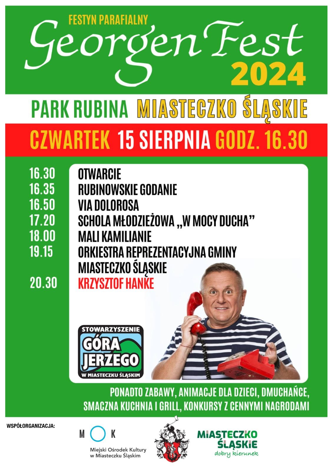 W czwartek, 15 sierpnia stowarzyszenie Góra Jerzego zaprasza na festyn parafialny Georgenfest w parku Rubina w Miasteczku Śląskim.