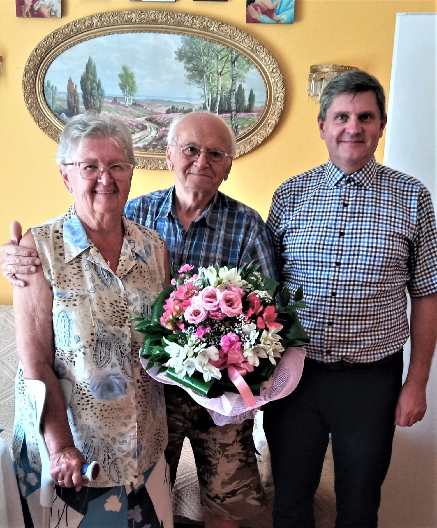 Miasteczkowskich jubilatów odwiedził burmistrz Tomasz Respondek. Wręczył im kwiaty i złożył życzenia jeszcze długich lat wspólnego życia w dobrym zdrowiu oraz szczęścia osobistego i rodzinnego.