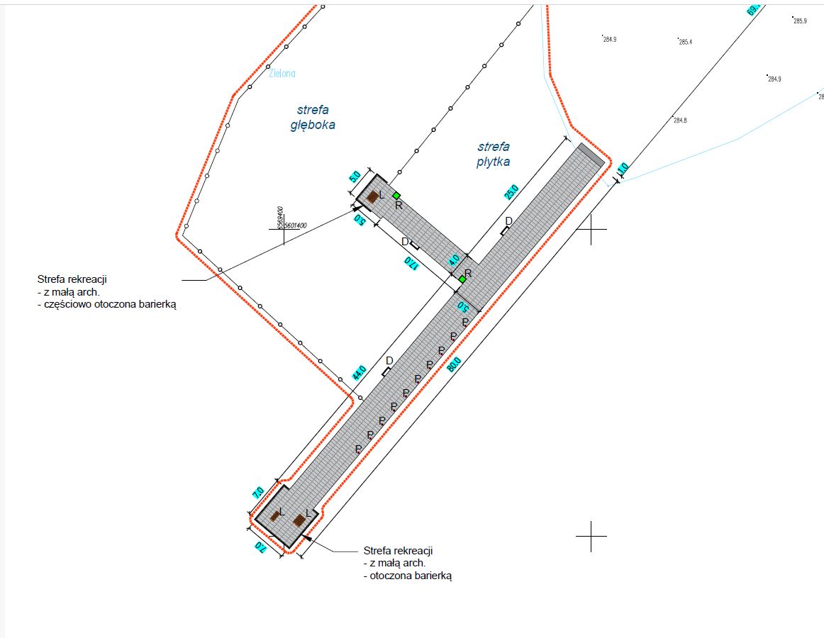Przedmiotem zamówienia jest budowa pomostu pływającego na górnym stawie w miejscowości Zielona (Kalety). Obiekt powstanie z polietylenowych pływaków kostkowych, wraz z pełnym wyposażeniem dodatkowym. Będzie przy istniejącej plaży.