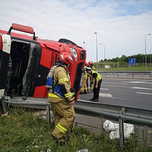 Zdarzenie miało miejsce przed godz. 9 na zjeździe z A1 w Piekarach Śląskich. Na zakręcie, przed rondem, ciężarówka przewróciła się na prawy bok. Jak relacjonował kierowca, prawdopodobną przyczyną była usterka techniczna. W pewnym momencie w ciężarówce zablokowały się koła z jednej strony zestawu (ciągnik siodłowy i naczepa), ciężarówką zarzuciło i przewróciła się.