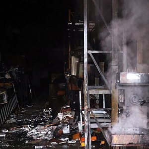 Zgłoszenie o pożarze wpłynęło wczoraj o godz. 14.30. Strażacy musieli użyć sprzętu hydraulicznego, żeby dostać się do środka. Pożarem objęta była część hali o powierzchni 60 m kw. oraz duża powierzchnia podwieszonego sufitu. Pozostała cześć hali, w której składowano materiały palne: papier, farby, deski oraz specjalistyczne maszyny produkcyjne. Było duże zadymienie, a dostęp do głównego wyłącznika prądu był utrudniony. W hali znajdował się również samochód osobowy z instalacją gazową i w połowie pełnym zbiornikiem oraz kanister z benzyną. Na miejscu zdarzenia był pracownik ochrony, który poinformował strażaków, że w środku na szczęście nikogo nie ma.