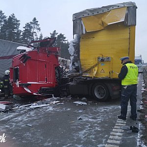 Jak podaje OSP Tąpkowice, która była na miejscu zdarzenia, jedna z kabin tira została zmiażdżona. Rannego kierowcę przetransportowano do szpitala.