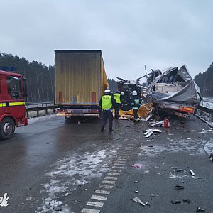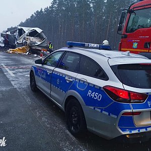 Służby otrzymały zgłoszenie około godz. 5.40. Ze wstępnych ustaleń wynika, że jeden samochód ciężarowy najechał na tył drugiego. Dokładne okoliczności wypadku ustala policja.