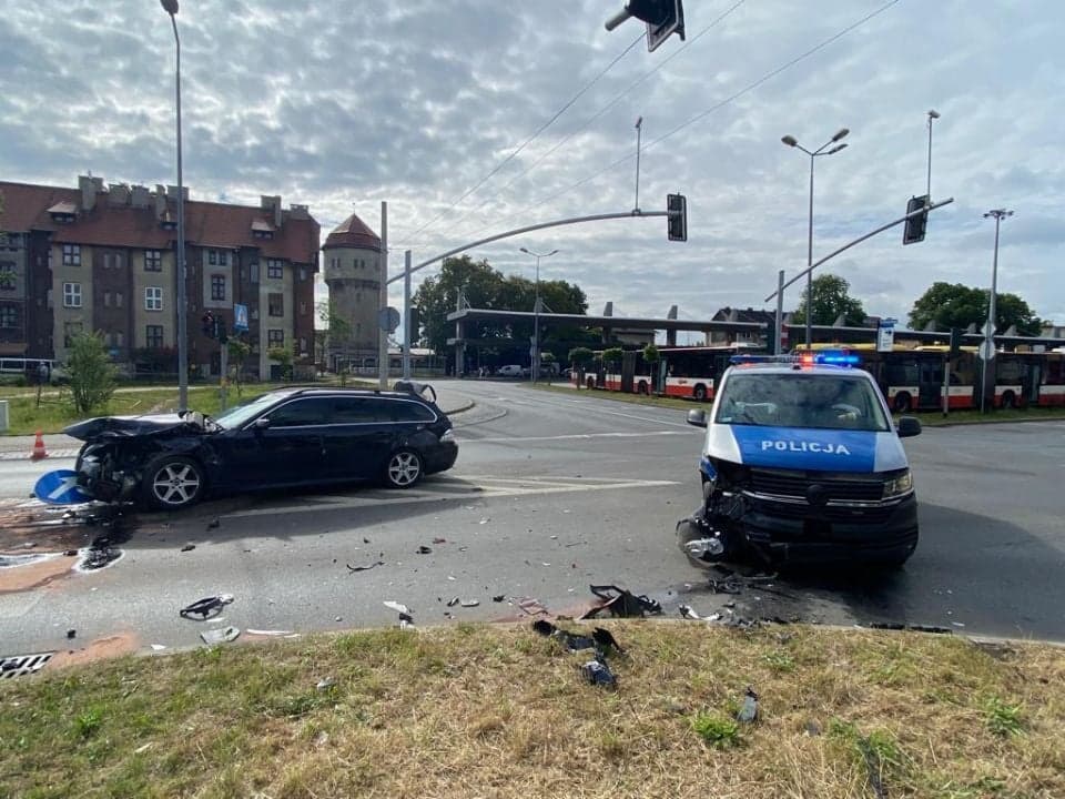 Tarnowskie Góry. Na skrzyżowaniu ul. Pokoju i Styczyńskiego, doszło do zdarzenia drogowego z udziałem radiowozu policyjnego i samochodu BMW. Fot. Jarosław Myśliwski
