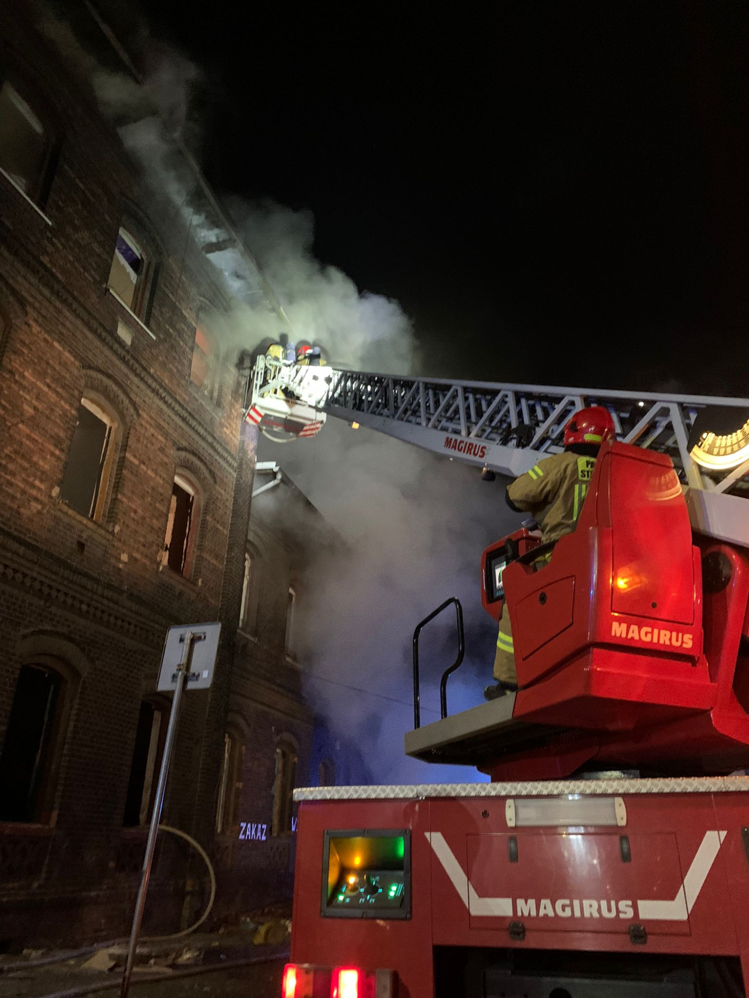 Dalsze działania polegały na przeprowadzeniu prac rozbiórkowych spalonych i uszkodzonych elementów, które wyniesiono z budynku i przelano wodą. Wnętrze budynku sprawdzono przy użyciu kamery termowizyjnej nie stwierdzając zagrożenia pożarowego.