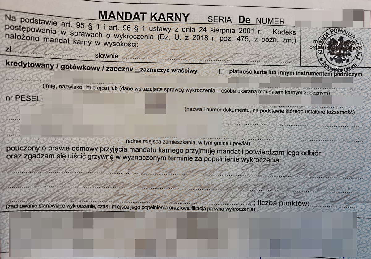 Za wykroczenie został ukarany mandatem karnym w wysokości 2 tysięcy złotych i dostał 14 punktów karnych.