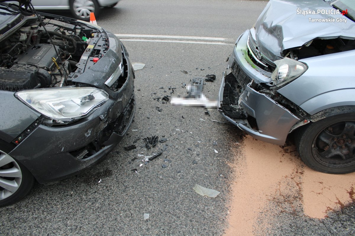 Na ul. Gliwickiej w Tarnowskich Górach doszło do wypadku. Zderzyły się czołowo dwa osobowe ople.