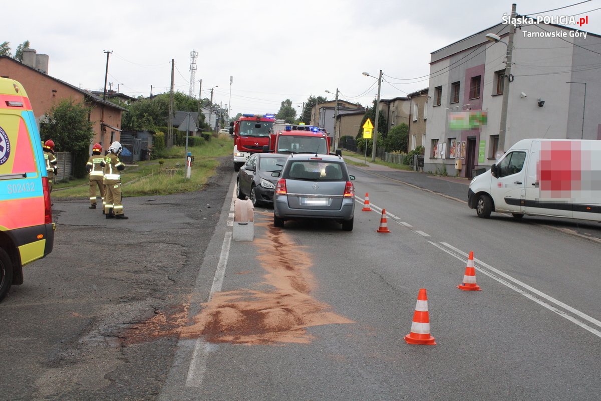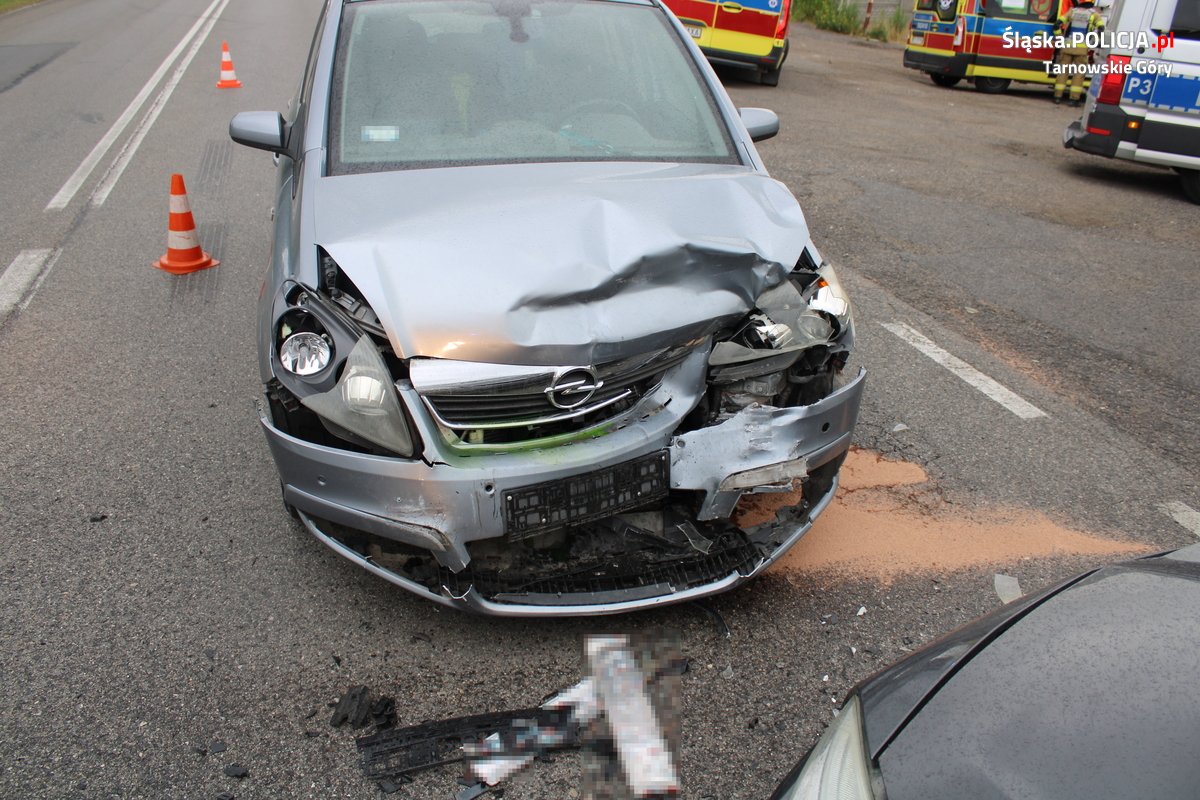 Wypadek miał miejsce dziś przed godz. 17 na wysokości zakładów mięsnych w Reptach Śląskich. Ze wstępnych ustaleń policji wynika, że winnym jest kierowca opla jadącego od strony Gliwic w kierunku Tarnowskich Gór.