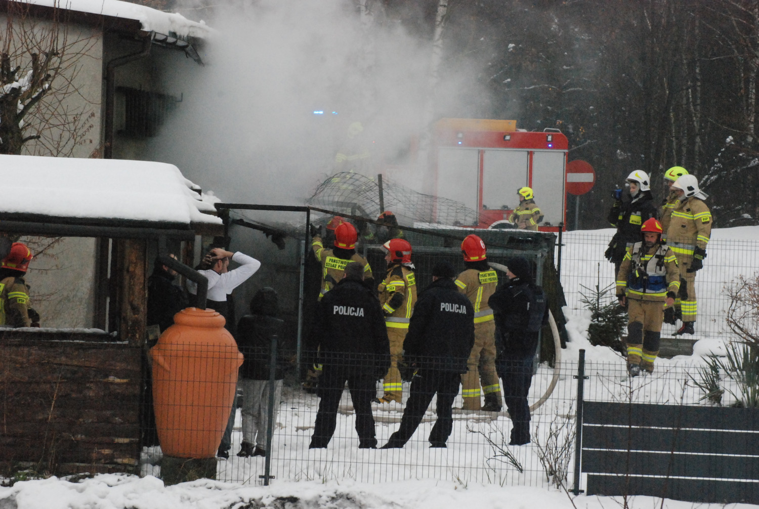 Na miejscu były trzy zastępy straży pożarnej. Miejsce zabezpieczała policja. Na razie nie wiadomo, jak jest przyczyna pożaru.