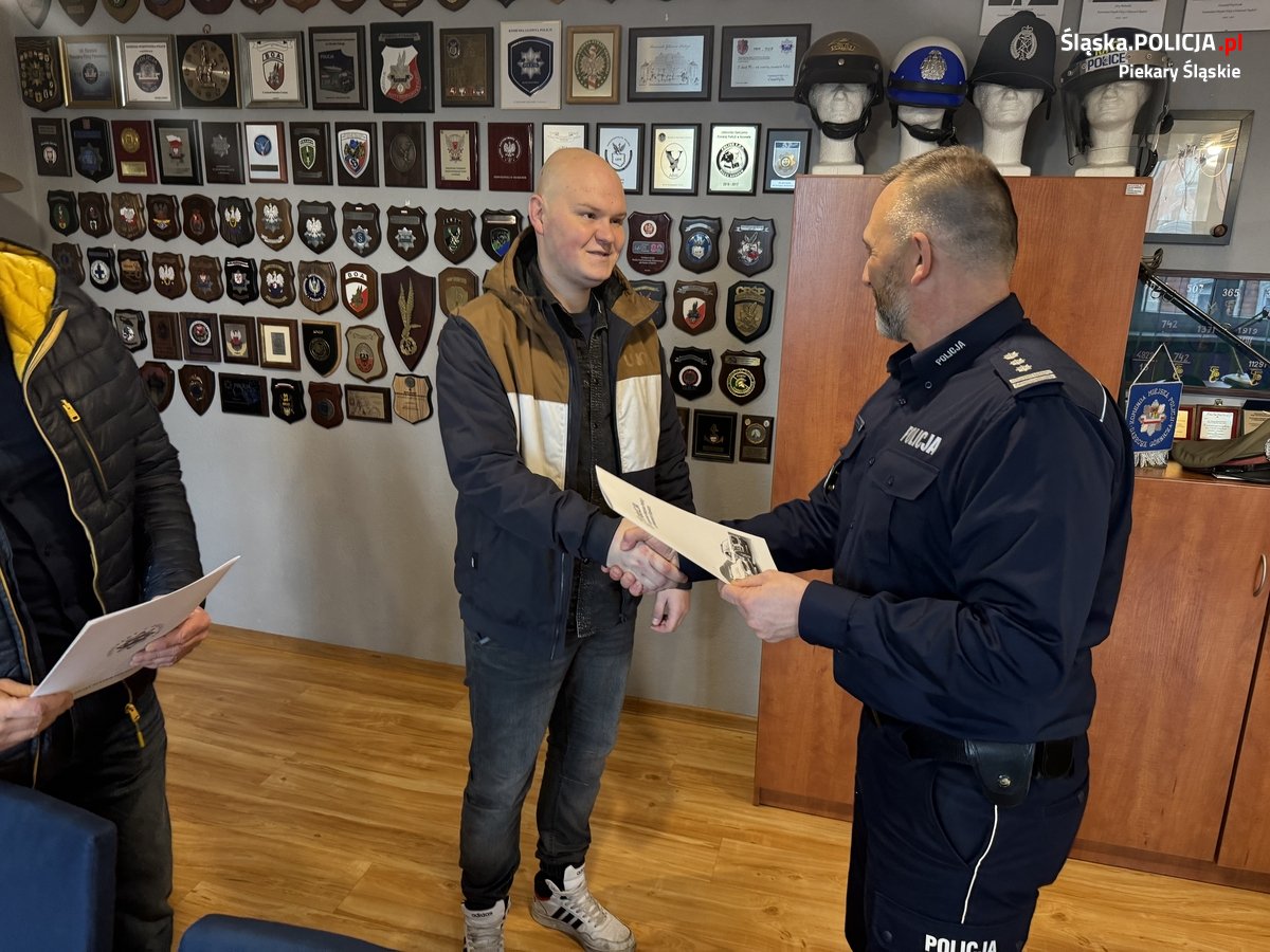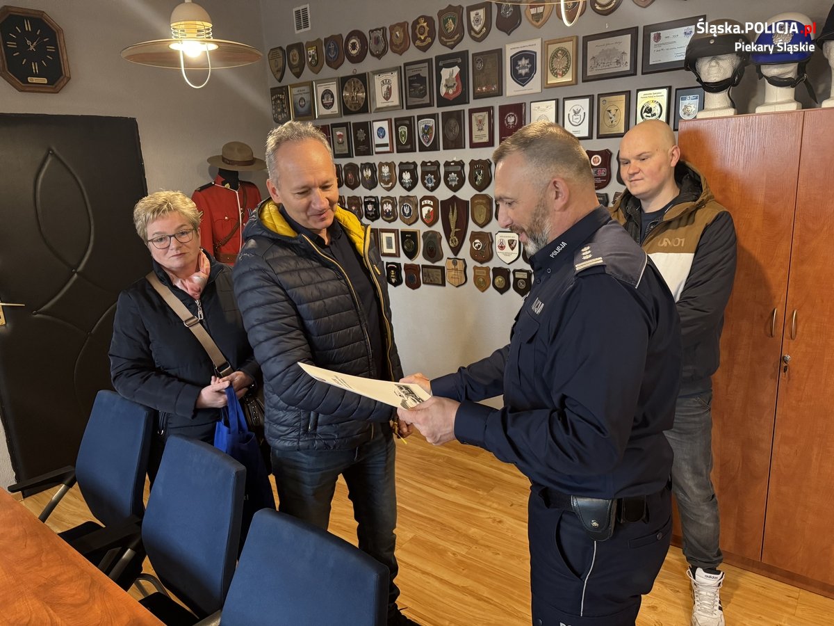 Cenne zguby trafią do właścicieli. Z uczciwymi mieszkańcami spotkał się komendant miejski Policji w Piekarach Śląskich insp. Paweł Dratwiński. Wręczył im listy gratulacyjne oraz drobne upominki, gratulując wzorowych obywatelskich postaw.