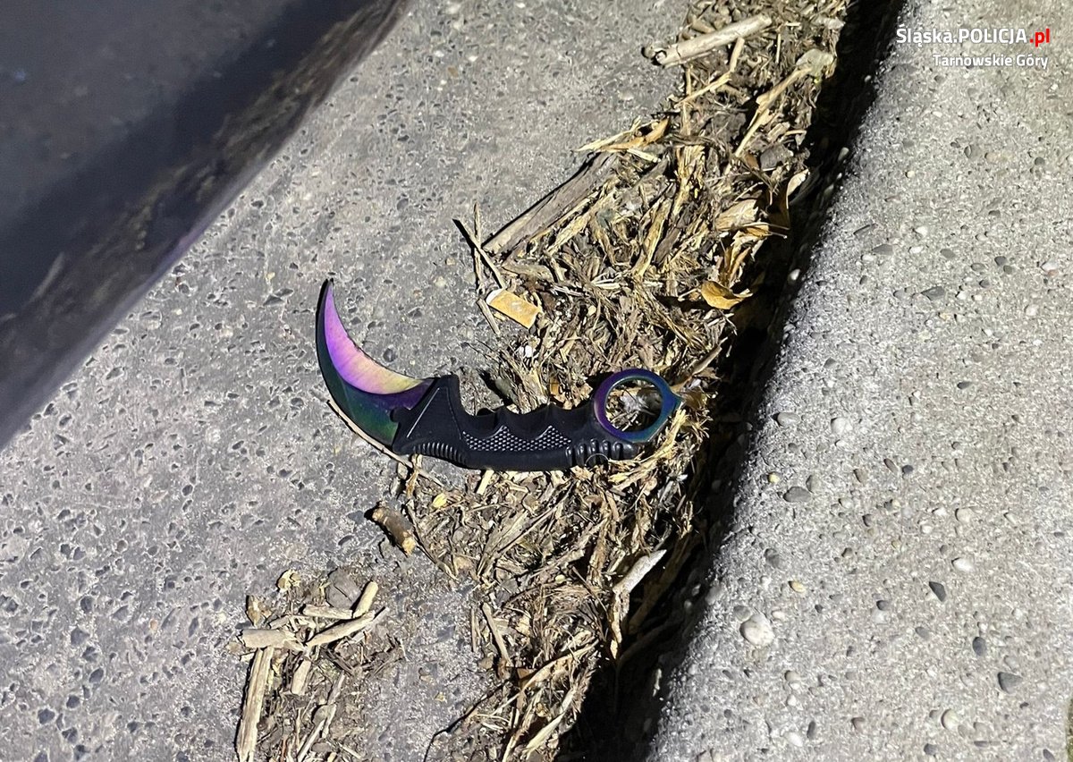 Kilkadziesiąt minut po godzinie 23 dyżurny tarnogórskiej komendy odebrał zgłoszenie, z którego wynikało, że po Kaczyńcu biega mężczyzna z nożem. Zgłaszający przekazał także mundurowym, że agresywny mężczyzna groził kilku osobom.