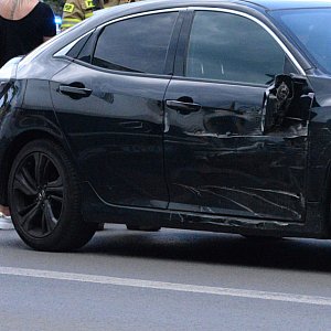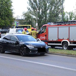 Zjeżdżając z ronda Ranoszka na ul. Piłsudskiego dostawczy mercedes uderzył w bok hondy, którą podróżowały dwie osoby.