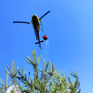 Pożar, który objął ponad 30 arów, gasiły w trudnych warunkach zastępy z 7 jednostek straży pożarnej, samolot gaśniczy i śmigłowiec.