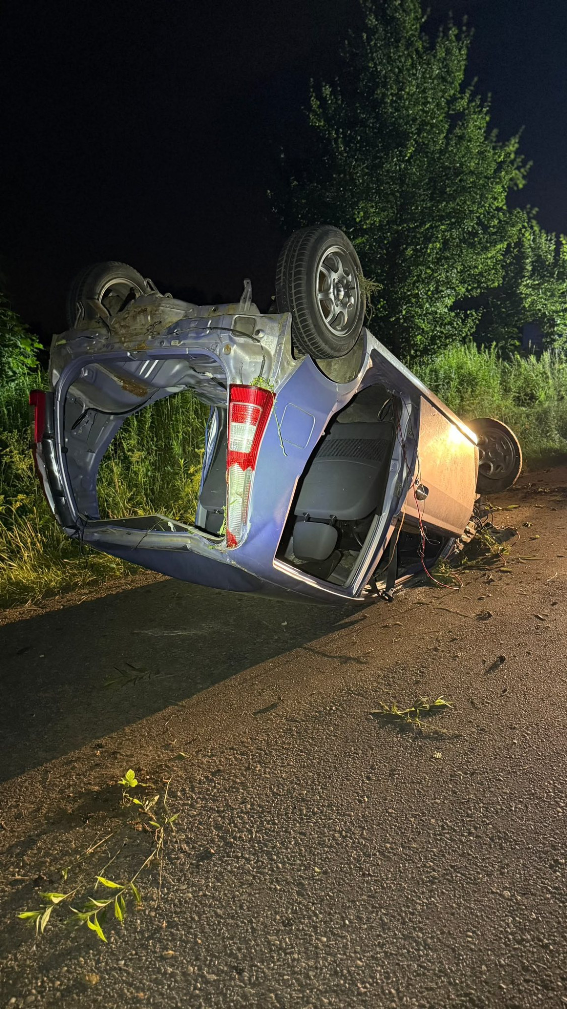 Dzisiaj w nocy w Ożarowicach doszło do dachowania samochodu osobowego. Pojazd został poważnie zniszczony. Okoliczności zdarzenia są wyjaśniane przez funkcjonariuszy.
