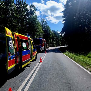 Motocyklista wywrócił się i z ciężkimi obrażeniami ciała został przetransportowany do szpitala przez Lotnicze Pogotowie Ratunkowe.