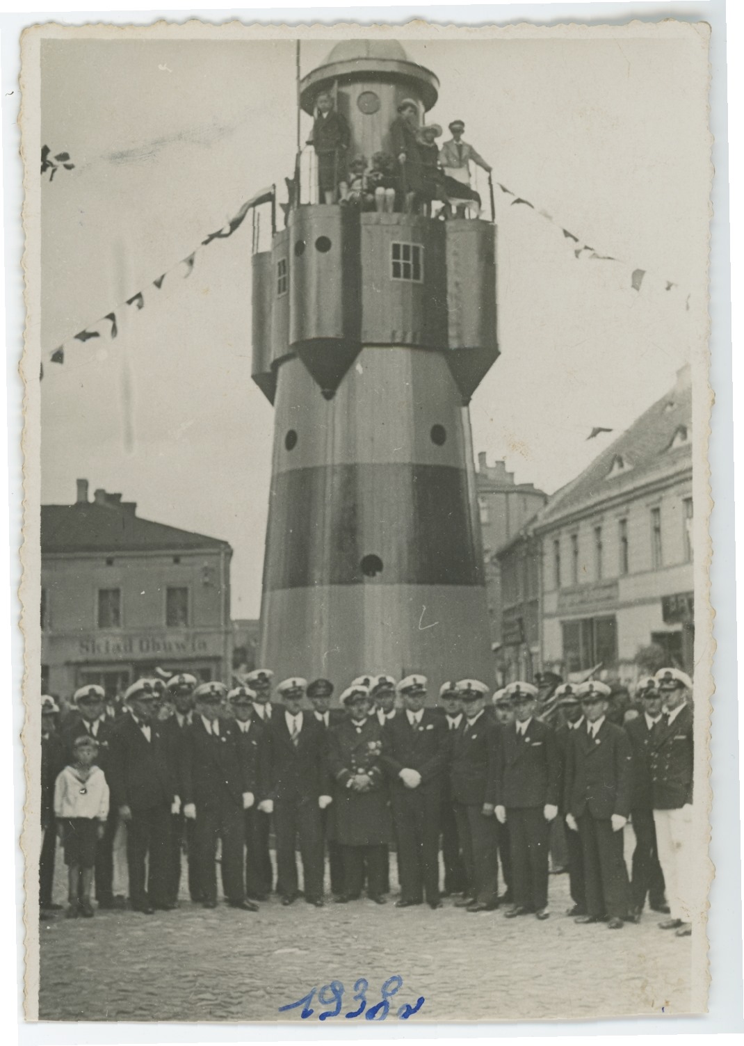 Uroczystość zorganizowała powiatowa Liga Morska i Kolonialna, do 1930 r. działająca pod nazwą Liga Morska i Rzeczna. Jej członkowie w regulaminowych ubiorach pozują na tle atrapy latarni morskiej. I tu pojawiły się wątpliwości. Jeden z internautów napisał, że chyba pomylono daty, bo widział podobne zdjęcie, ale z 1936 roku.