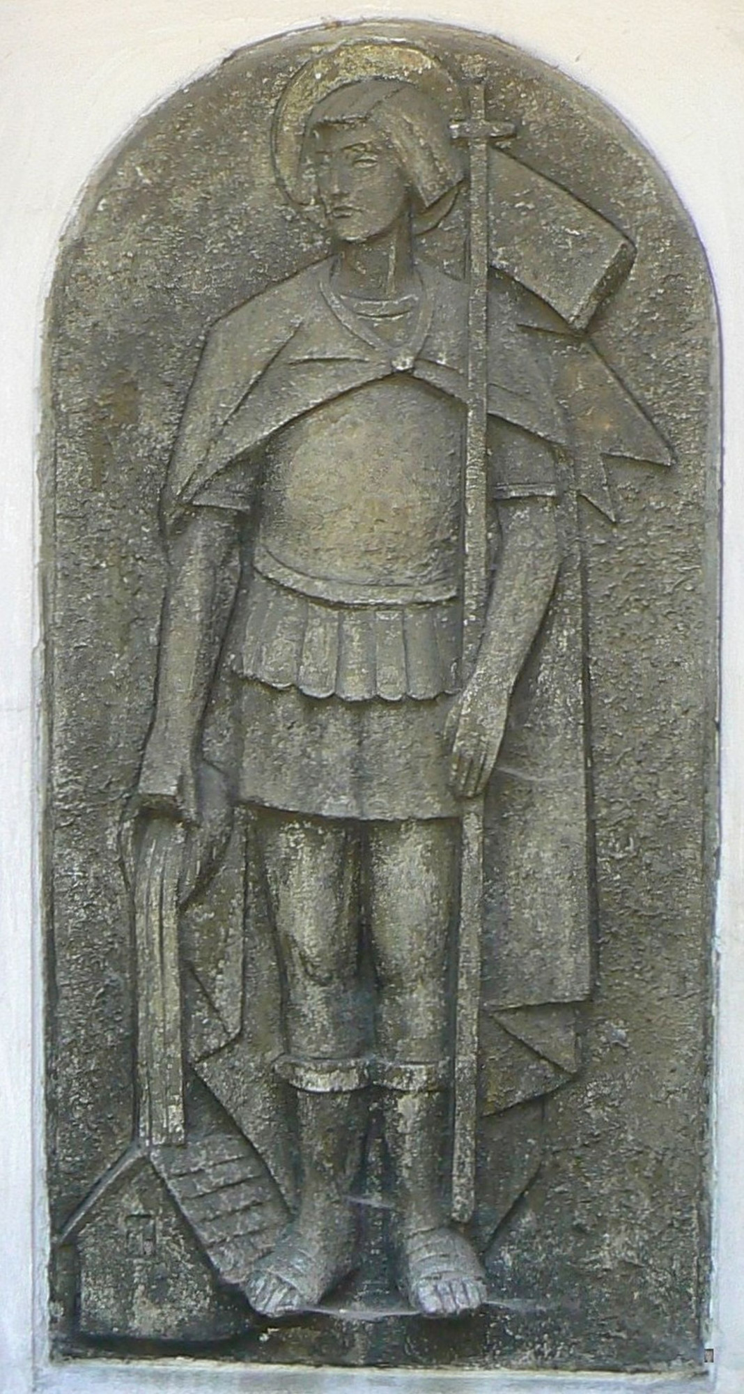 Wyrzeźbiony tam święty młodzieniec wcale nie sprawia wrażenia gotującego się do walki z żywiołem herosa. Podkreśla to szczegół wyjątkowy i nader rzadko w ikonografii spotykany. Otóż głowa świętego pozbawiona jest hełmu. A przecież św. Florian, to rzymski żołnierz. Stąd rzymski pancerz i kaligi - wojskowe sandały.