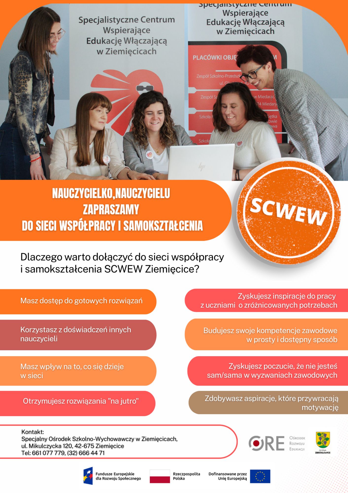 Potrzebujesz wsparcia, konsultacji, rozmowy? Zapraszamy do kontaktu: SCWEW Ziemięcice przy SOSW w Ziemięcicach, ul. Mikulczycka 120, 42-675 Ziemięcice, tel. (32) 666-44-71, 661-077-779.