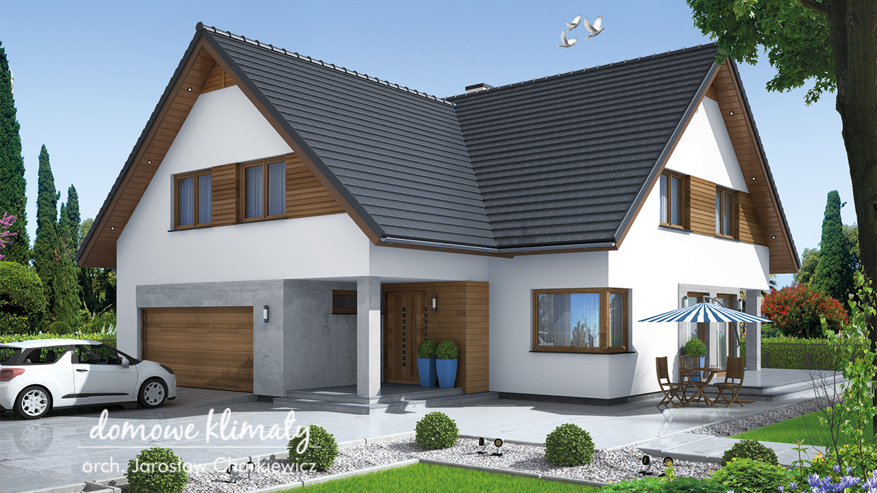 Decyzja o wyborze tego typu projektu nie oznacza, że jedynym rozwiązaniem jest dom o dwuspadowym dachu i charakterze wiejskiej chaty. Zwarte bryły, klasyczne linie to elementy nieodzowne w takich nieruchomościach, ale zwykle wzbogacone są o balkony, tarasy czy wykusze, które nadają im lekkości i sprawiają, że nabierają one charakteru klasycznego dworku ziemiańskiego, nie zaś chłopskiej chaty. Klasyczne kształty doskonale wkomponowują się w każde otoczenie. Jest też grupa projektów, które choć swojskie, mają nowoczesny wygląd.