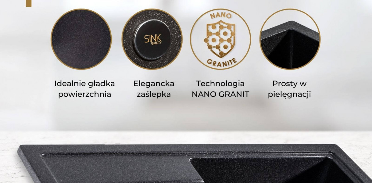 Zlewy podwieszane firmy SINK Quality wykonane są z granitu. Po pierwsze, zlewozmywak jest mocowany do spodu blatu za pomocą śrub lub klipsów. Następnie na obwodzie zlewu nakłada się masę uszczelniającą, aby stworzyć wodoszczelne uszczelnienie.