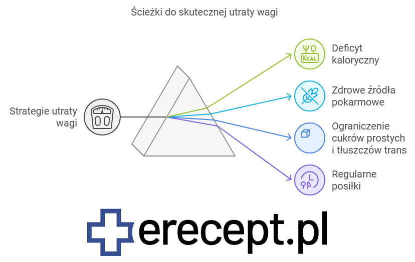 - Deficyt kaloryczny: Aby redukować masę ciała, należy spożywać mniej kalorii, niż organizm spala. Zaleca się zmniejszenie dziennego spożycia kalorii o 500–1000 kcal, co pozwala na utratę 0,5–1 kg masy ciała tygodniowo.