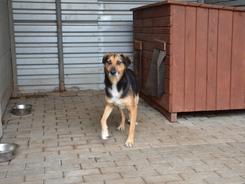 Teoś jest uroczym psiakiem. Trochę powyżej kolana, długonogi, smukły. Sierść czarna podpalana, krótka. I ten obłędnie uroczy pyszczek z klapniętymi uszkami i spojrzeniem, które wydaje się przenikać człowieka na wskroś. Nie wiemy, co złego spotkało Teosia w przeszłości. Na pewno było to coś, co pozostawiło głębokie blizny na jego duszy Przyjechał do schroniska jako bardzo młody pies, podrostek. Było to już cztery lata temu a Teoś nadal tu jest. Teoś jest bardzo zainteresowany ludźmi i jednocześnie bardzo się boi. Nadal bardzo stresuje go dotyk w okolicy szyjki. Panicznie boi się smyczy. Wiemy, widzimy jak czeka na człowieka, jak patrzy z nadzieją, że ktoś do niego przyjdzie. I widzimy też jak nie umie się otworzyć, jak mu trudno. To ogłoszenie to wołanie o cud. Może znajdzie się ktoś, kto tak po prostu się w nim zakocha i da mu szansę. W domu z ogrodem, w spokoju i codziennej rutynie, z człowiekiem, który otworzy serce i cierpliwie da czas - Teoś zaufa, odbuduje pewność siebie, zbuduje relację, pokocha. Opiekun adopcyjny - Aneta 502 237 454