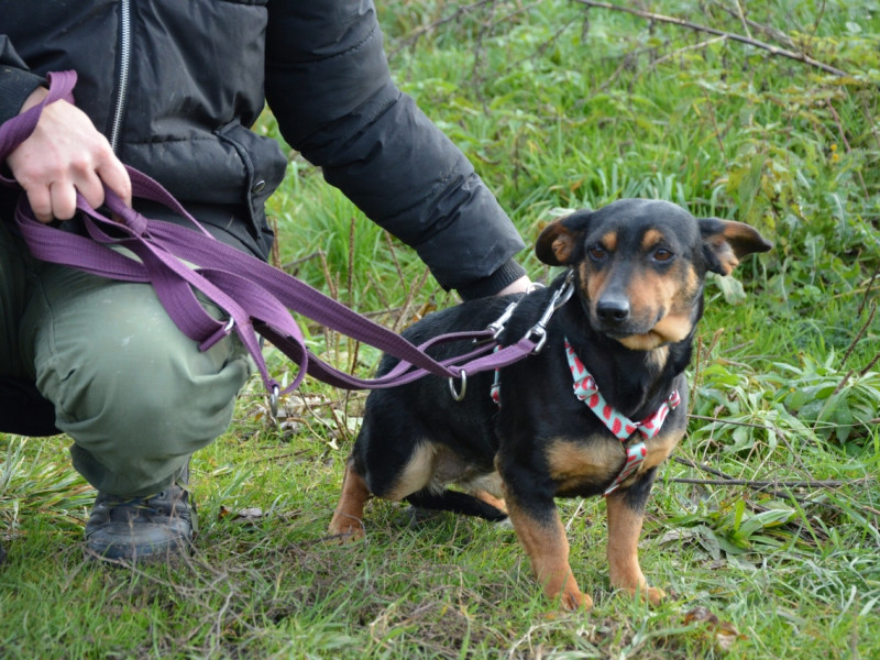 Żaba to mała suczka bardzo przypominająca jamnika. Jest jeszcze młodziutka - wiek szacowany na około 2,3 lata. Ma czarne lśniące futerko i brązowe znaczenia na pyszczku. Żabka jest nieśmiałym pieskiem, którego bardzo przytłacza schronisko. Trudno odnaleźć się takiemu maleństwu wśród tylu dużych, głośnych psów. Jest łagodna - pozwala na głaskanie, chętnie poczęstuje się smaczkiem, w razie potrzeby - można wziąć ją na ręce. Pozwala także na ubranie sprzętu spacerowego. Samo spacerowanie wymaga treningu. Nasza malutka Żabka bardzo potrzebuje kochających ludzi, którzy pomogą jej nabrać pewności siebie i w spokojnych, domowych warunkach cierpliwie pokażą, jak szczęśliwy może być pies. Jest bardzo zimno - króciutkie futerko słabo chroni przed mrozem. Może w Twoim sercu i domu znajdzie się miejsce dla małej zmarzniętej nieśmiałej psinki? Opiekun adopcji: Martyna:501818440