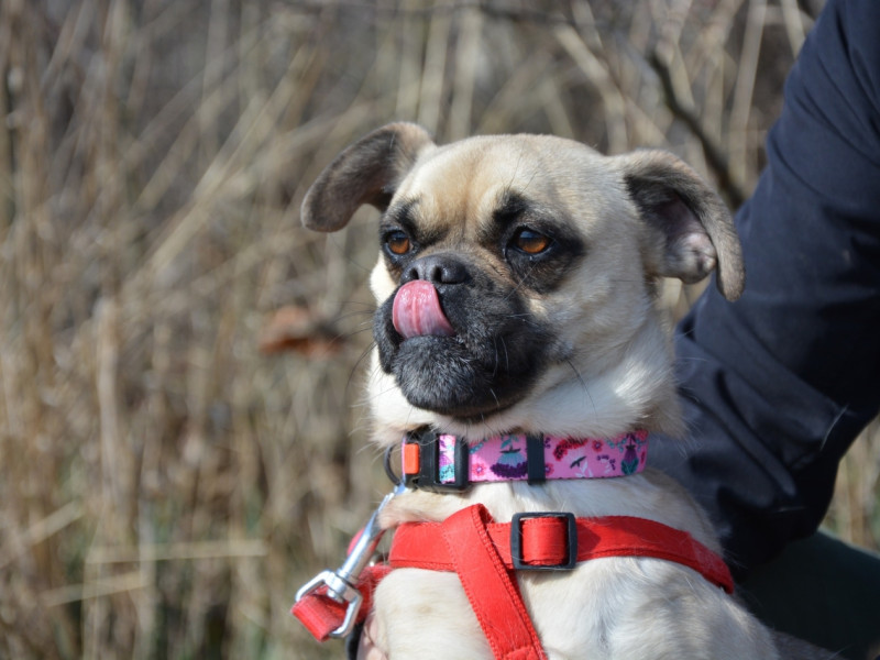 Daisy to około 3-letnia sunia w typie mopsa, pełna pozytywnej energii i radości życia. Uwielbia kontakt z człowiekiem - przytulanie, wspólne spacery i bycie blisko swojego opiekuna to dla niej największe szczęście. Szukamy dla niej odpowiedzialnego, troskliwego domu, który pokocha ją na dobre i na złe oraz będzie przy niej już na zawsze. Daisy zasługuje na stabilność i poczucie bezpieczeństwa do końca swojego życia. Sunia nie najlepiej odnajduje się w towarzystwie innych psów oraz kotów, dlatego sugerujemy, aby była jedynaczką i mogła w pełni skupić się na relacji z człowiekiem. Przed adopcją obowiązuje procedura przedadopcyjna. Jeśli czujesz, że Daisy może stać się częścią Twojej rodziny lub masz pytania - napisz lub zadzwoń: Agnieszka - 517 626 611