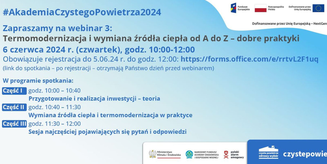 W najbliższy czwartek, 6 czerwca, odbędzie się kolejny webinar w ramach Akademii Czystego Powietrza 2024. Spotkanie rozpocznie się o godz. 10.