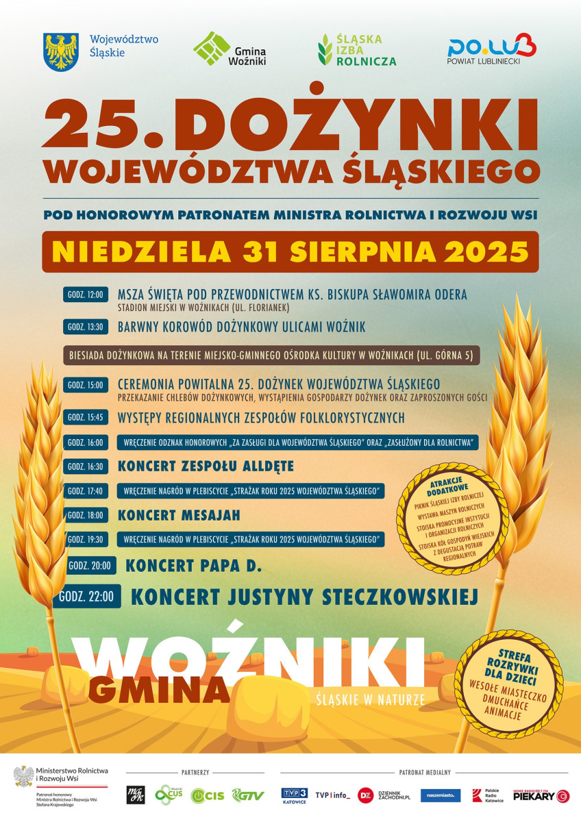 31 sierpnia w Woźnikach odbędą się 25. Dożynki Województwa Śląskiego.
