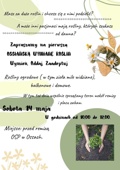 W sobotę, 14 maja w Ossach po raz pierwszy organizowana jest wymiana roślin.