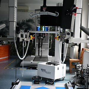 – Ta bieżnia symuluje sytuacje, które mogą wydarzyć się w terenie: przyspiesza, zwalnia, przechyla się na boki, wykonuje tzw. perturbacje. Dzięki temu pacjent uczy się zachowywać równowagę np. na nierównej nawierzchni czy przy niespodziewanej zmianie tempa marszu – wyjaśnia fizjoterapeutka. Z takiego rodzaju treningu korzystają przede wszystkim osoby po zwichnięciach, z endoprotezami – pacjenci, którzy już samodzielnie chodzą.