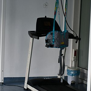 Dla pacjentów silniejszych, którzy nie potrzebują już balkonika do chodzenia, dostępna jest kolejna bieżnia – bardziej wymagająca, ponieważ nie posiada poręczy. Szelki pełnią tutaj wyłącznie funkcję asekuracyjną, a nie odciążającą.