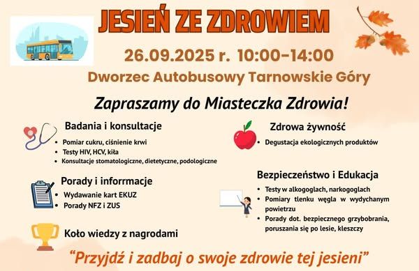 W piątek, 26 września, w godz. 10-14 na dworcu autobusowym w Tarnowskich Górach będzie miasteczko zdrowia.